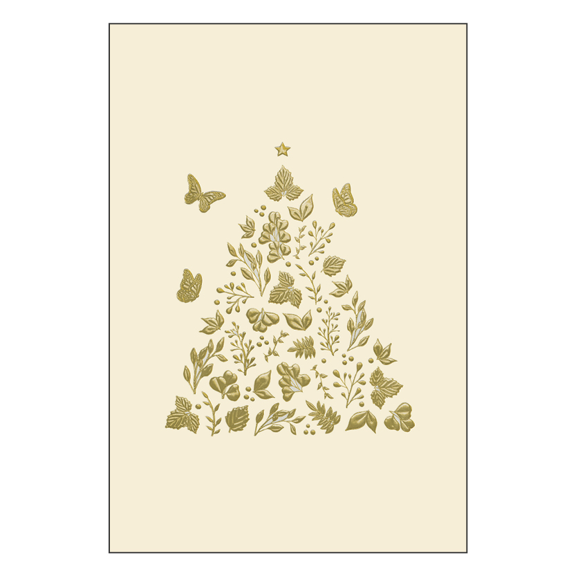 Fournie avec feuillet de voeux (Meilleurs Voeux en 5 langues) en écriture dorée sur papier velin Original Crown Mill et enveloppe non doublée papier crème velin Original Crown Mill. Taille de l’enveloppe : 12cm x 18cm (affranchissement 1 timbre).