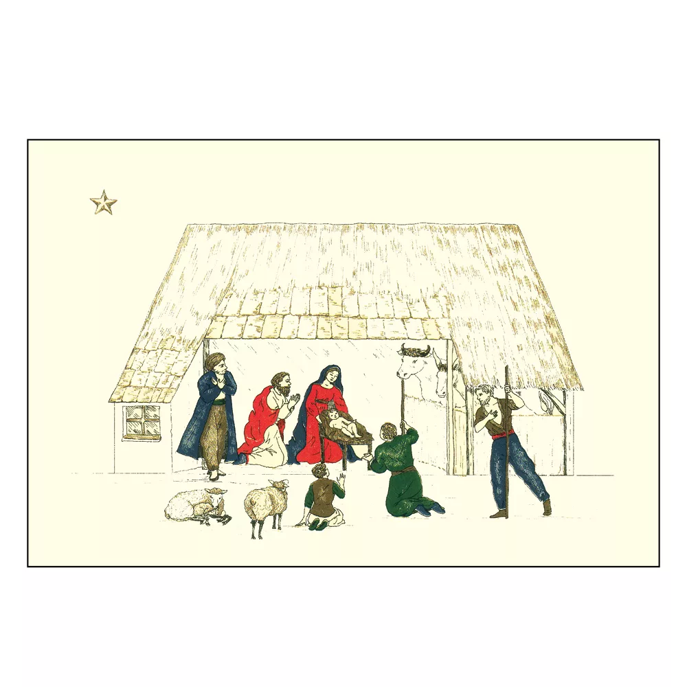 Carte de voeux double dessinée sur papier crème Original Crown Mill. 11,5cm x 17cm.
