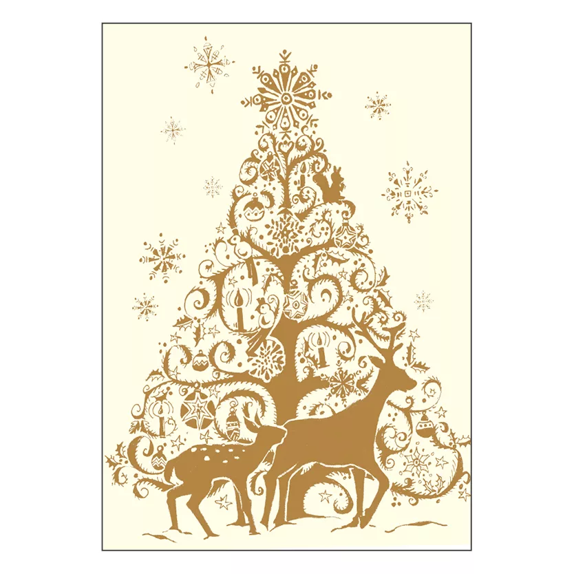 Carte de voeux double dessinée sur papier crème Original Crown Mill. Dessin doré. 11,5cm x 17cm.
