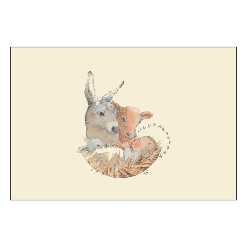 Carte de voeux double dessinée sur papier crème Original Crown Mill. 11,5cm x 17cm.
